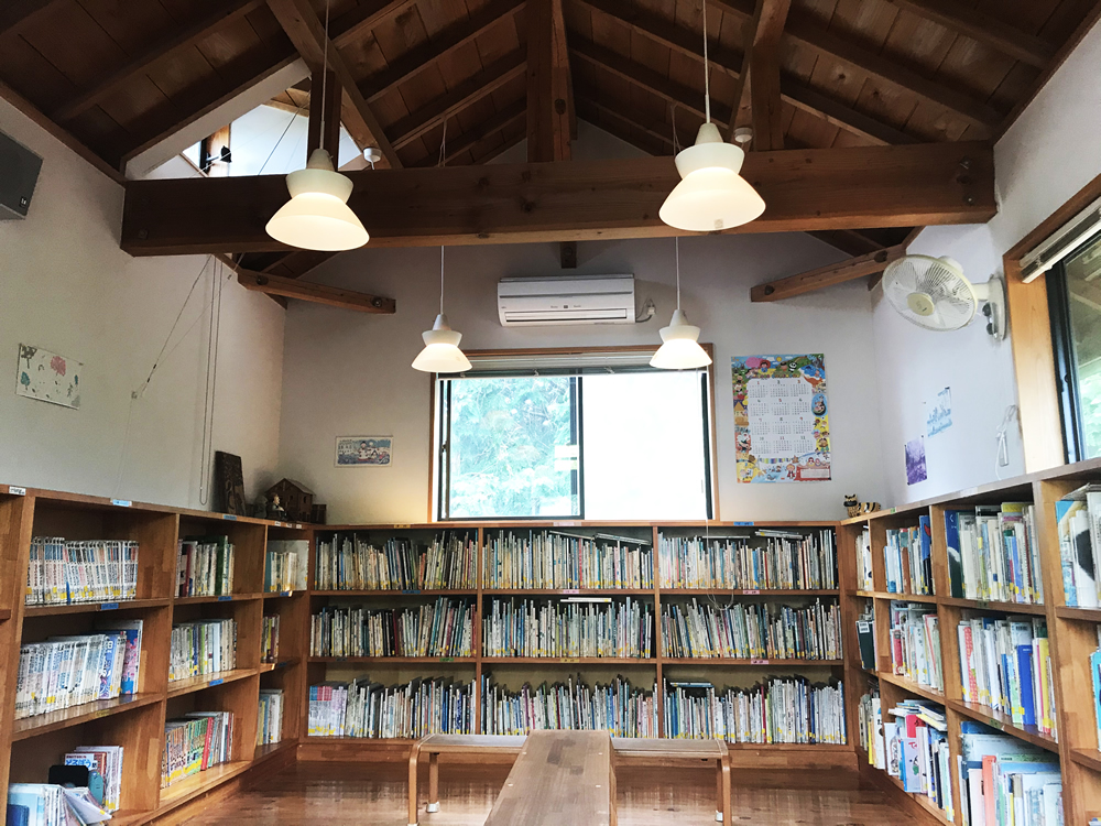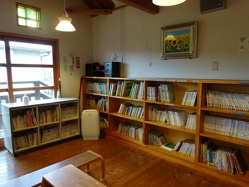 一時保育室の二階が絵本図書館です